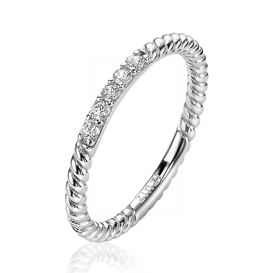 ZINZI zilveren ring gedraaid 2mm witte zirconia's ZIR2128