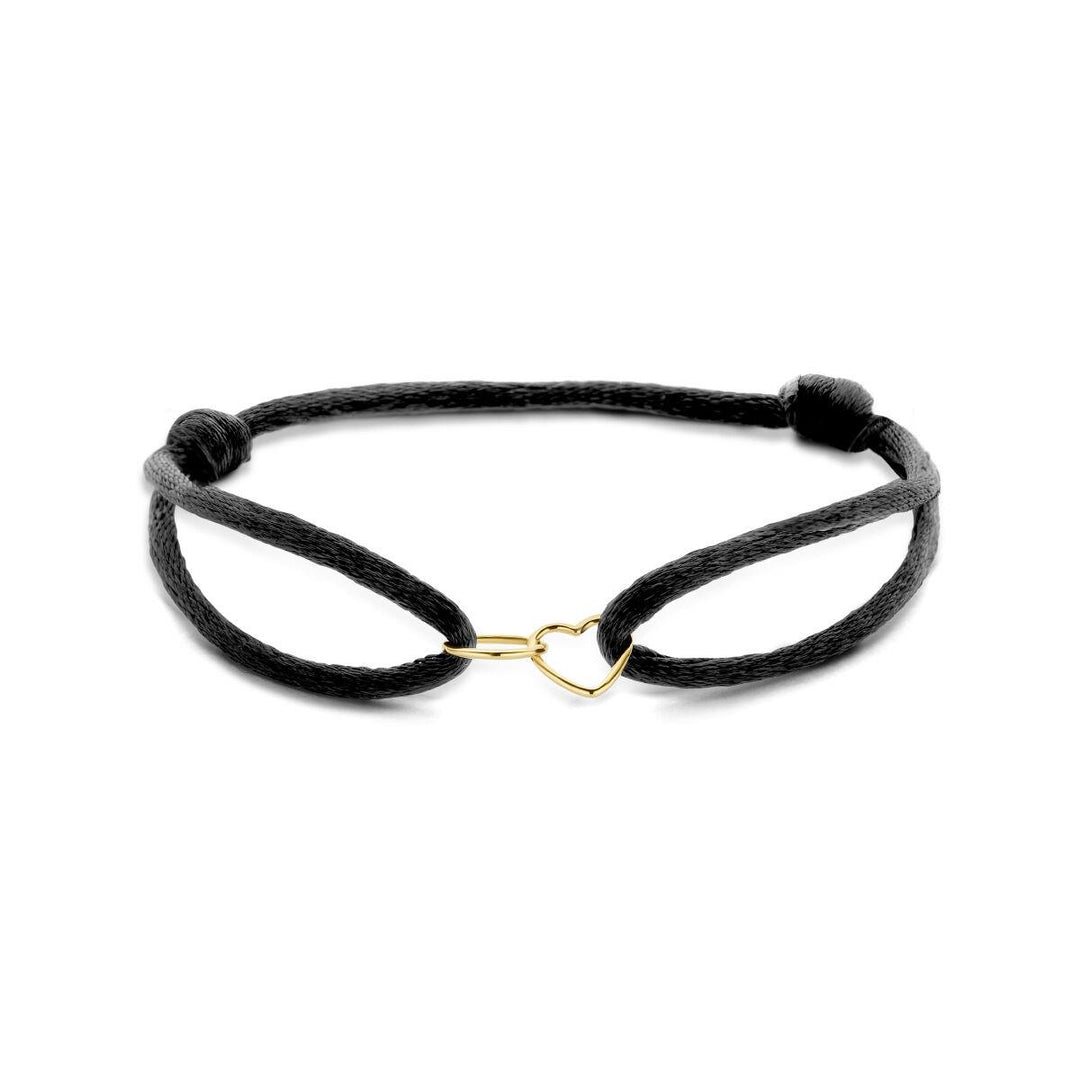 14 kt armband satijn zacht roze hart 13 - 26 cm