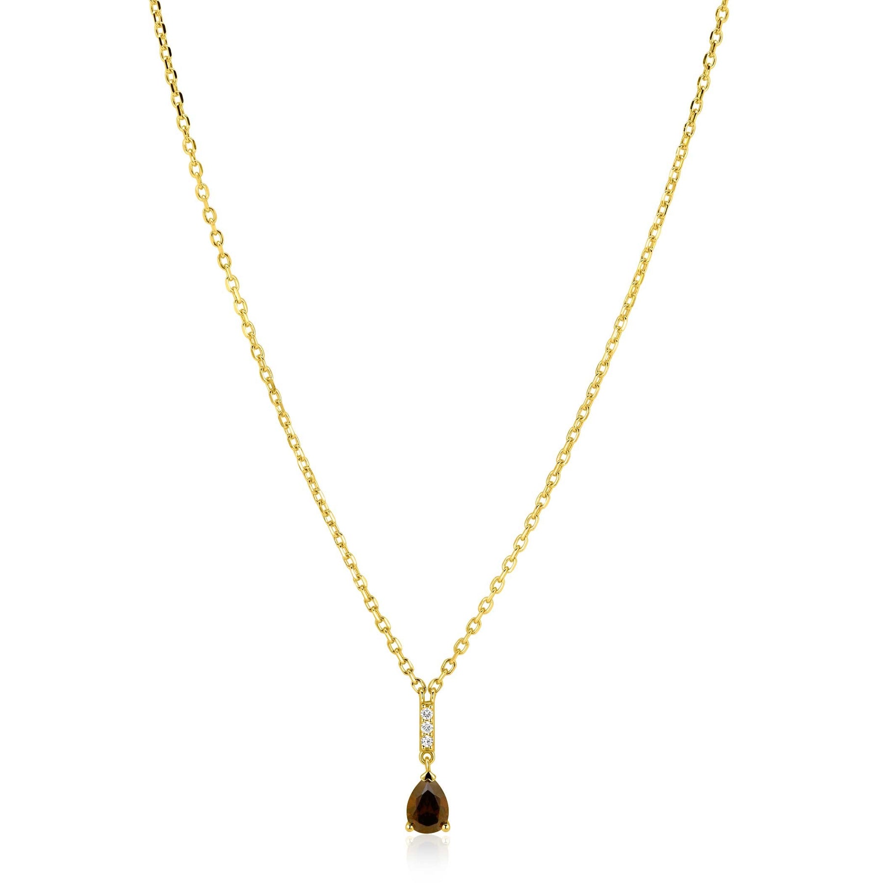 ZINZI goldplated ketting met bruine druppelsteen – ZIC2804 (45cm)
