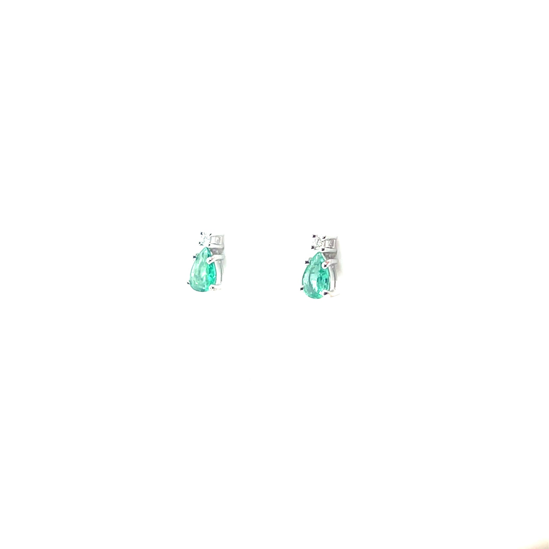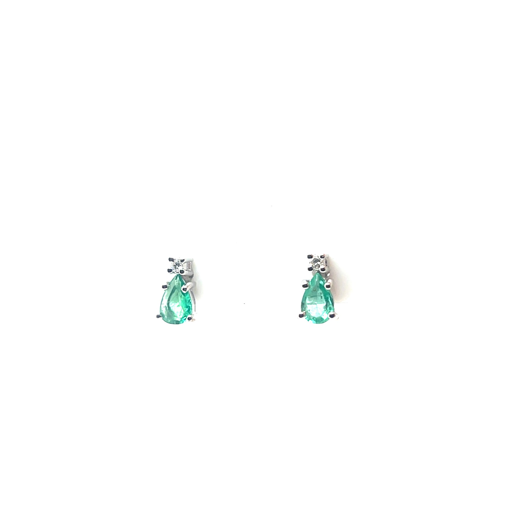 14 kt oorstekers wit druppelvorm smaragd en Diamant