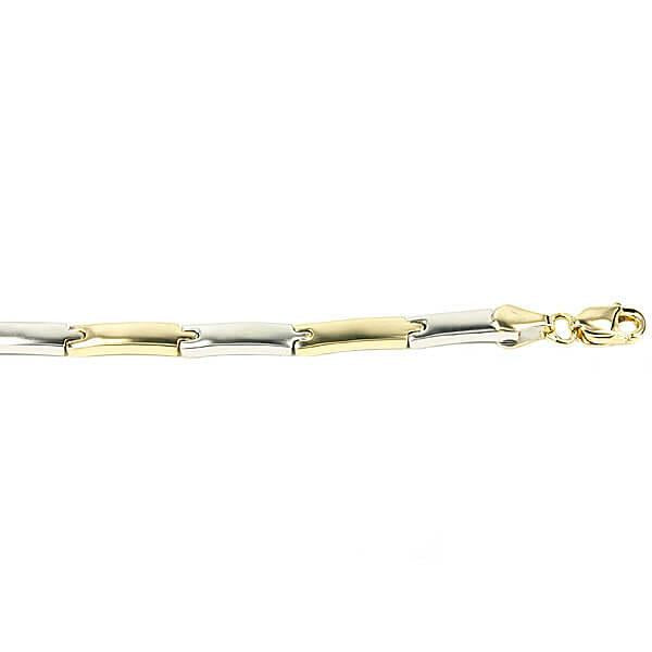 Productdetails: - Merk: Monzario - Model: 867A - Lengte: 19 cm - Breedte: 3.4 mm - Afwerking: Glanzend - Schakeltype: Blokjes - Primair materiaal: Bicolor (geelgoud met witgoud) - Productnummer: 867-A BIC 19.0cm 14 krt. Dit prachtige sieraad van Monzario, model 867A, biedt een perfecte combinatie van elegantie en verfijning. Met zijn glanzende afwerking en schakeltype van blokjes is dit bicolor armbandstuk vervaardigd uit hoogwaardig geelgoud met witgoud. Met een lengte van 19 cm en een breedte van 3.4 mm is dit sieraad ideaal voor dames die op zoek zijn naar een tijdloos stuk om hun collectie te verrijken.