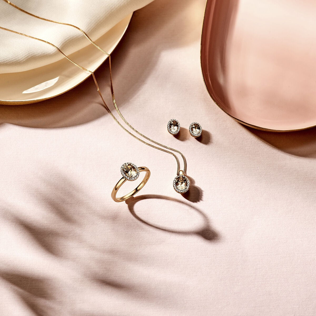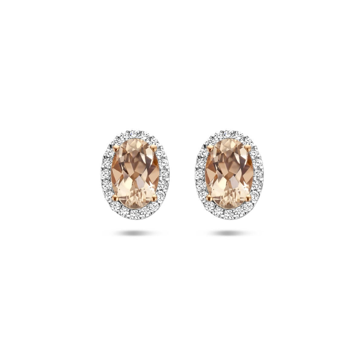 oorknoppen morganiet en diamant 0.12ct h si halo