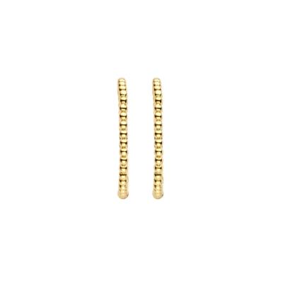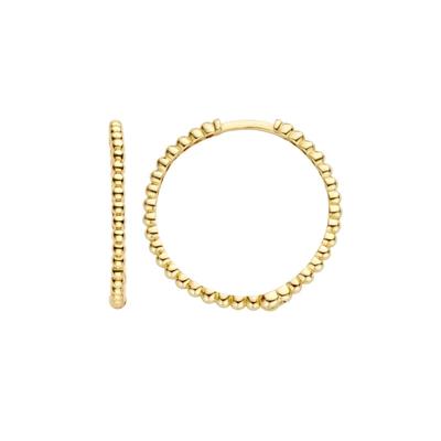 Oorringen 7291YGO - 14k Geelgoud Het bolletjespatroon geeft deze 14k geelgouden ronde oorringen een speelse uitstraling. De doorsnede van is 20 mm. Deze oorringen staan prachtig op zichzelf, maar matchen ook mooi met andere (oor)sieraden uit onze collectie. Onze sieraden Alle sieraden van Blush zijn met aandacht en liefde gemaakt van 14k goud - geel, rosé of wit. Hoge kwaliteit waarvan je jarenlang plezier hebt staat bij ons voorop net als de mogelijkheid om eindeloos te mixen en te matchen. Een sieraad van Blush is een cadeau voor jezelf of een ander en komt daarom altijd in een cadeauverpakking. Product ID: 7291YGO Diameter: ø 1,6 mm Lengte: 20 mm Type goud: 14k Geel goud Type sluiting: Kliksluiting