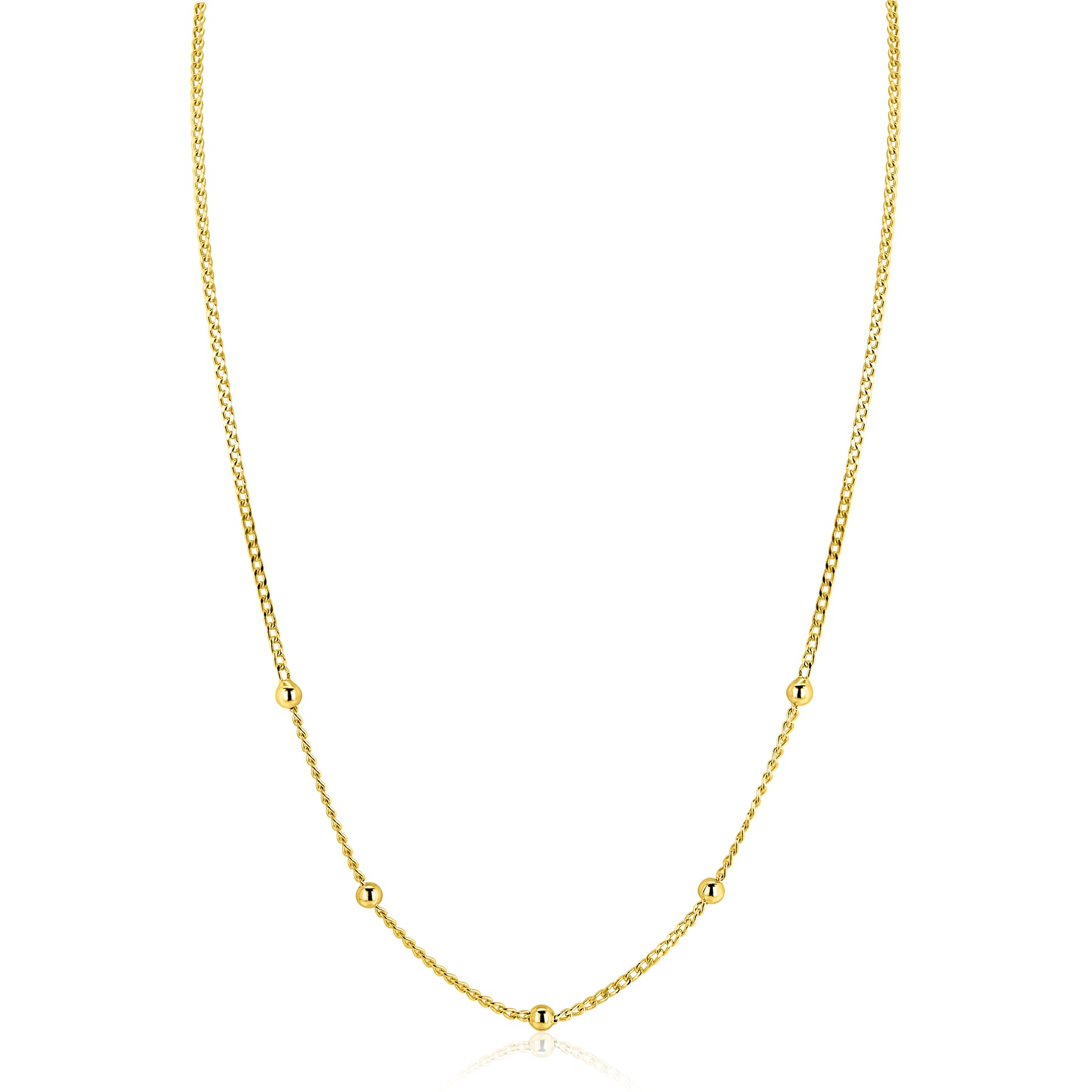 ZINZI gold plated zilveren gourmet ketting met vijf bolletjes 42–45cm ZIC2714G