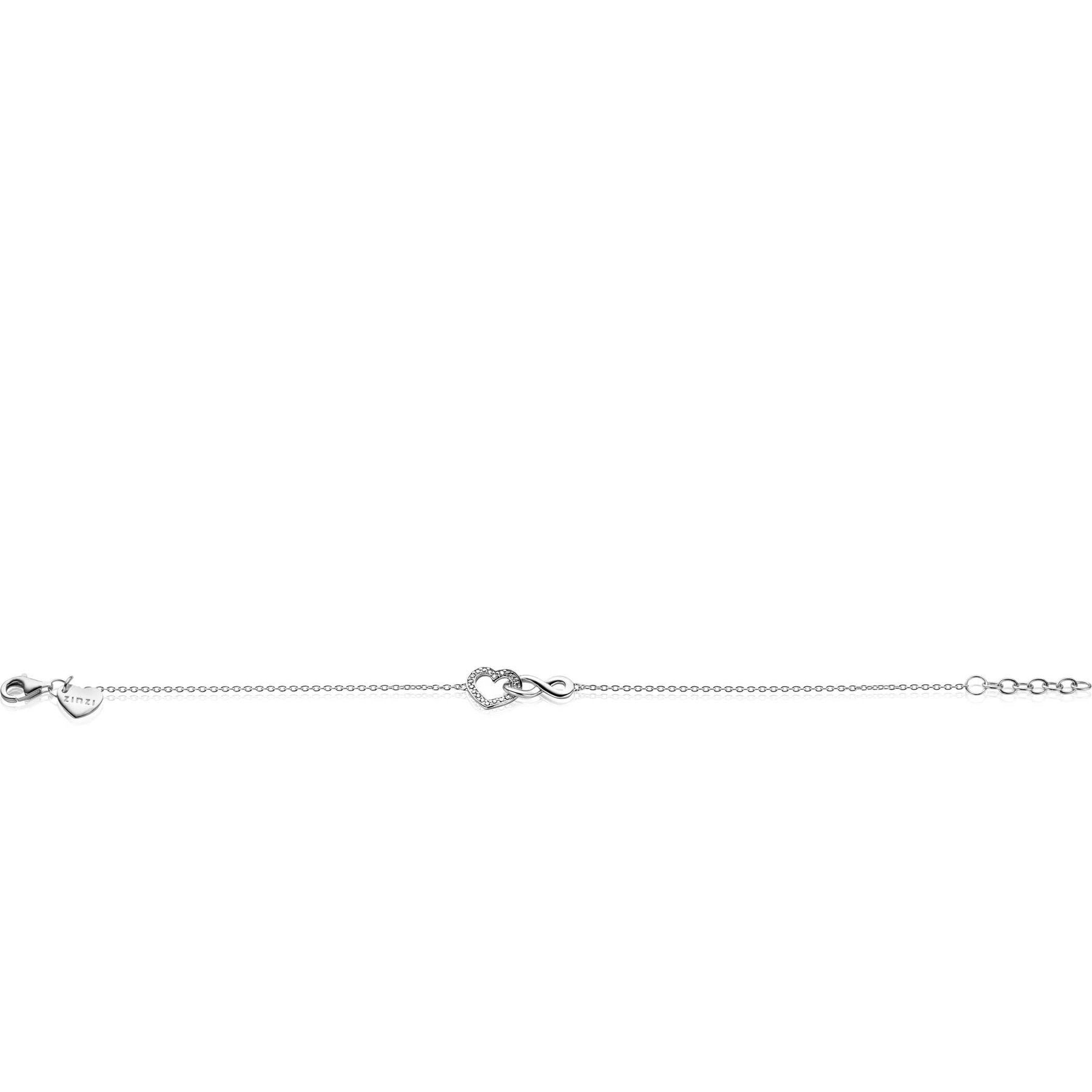 ZINZI zilveren armband met Infinity teken verbonden met een open hart, bezet met witte zirconia's 17-19cm ZIA2596