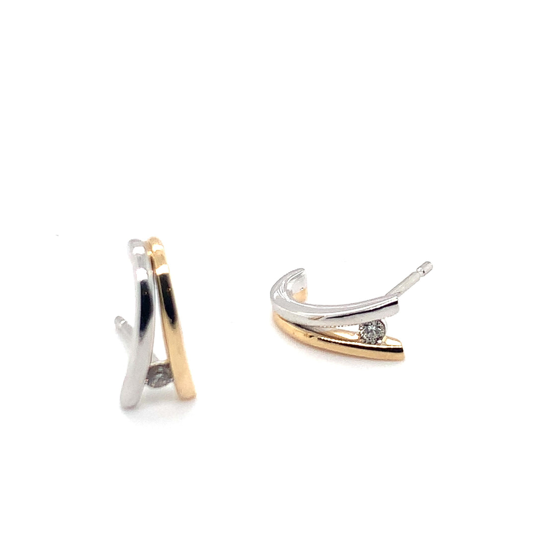 14 kt bicolor oorknoppen vork 2 x 0.03ct W-Vsi