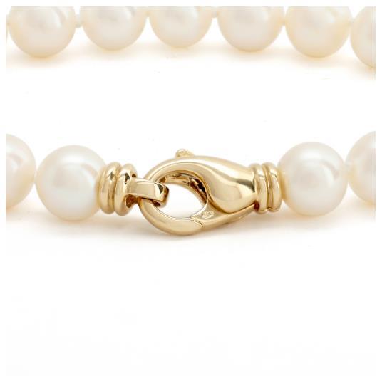 Een Elegante Parelhalsketting van 42 cm met 14 kt Gouden Tussenkralen en een Prachtige Bolle 14 kt Zware Veerring