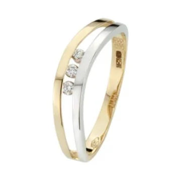 14 kt bicolor ring gezet met 3 x diamant