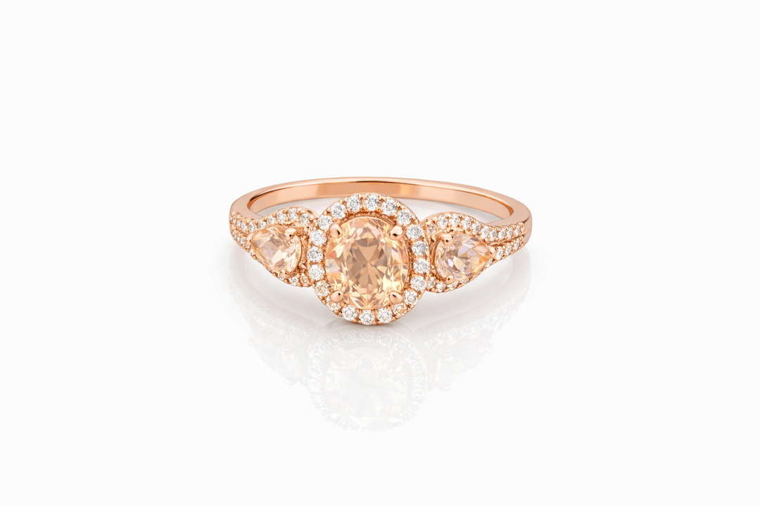 14 kt rose ring met Diamant en Morganiet