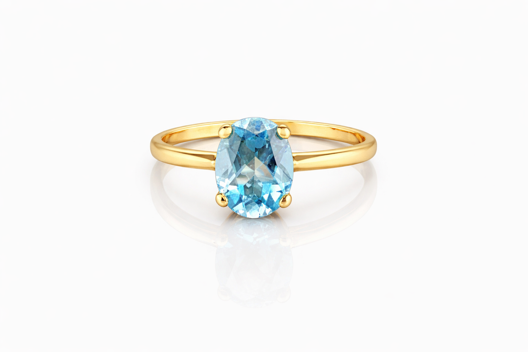 14 kt gdn ring met London Blue Topaas