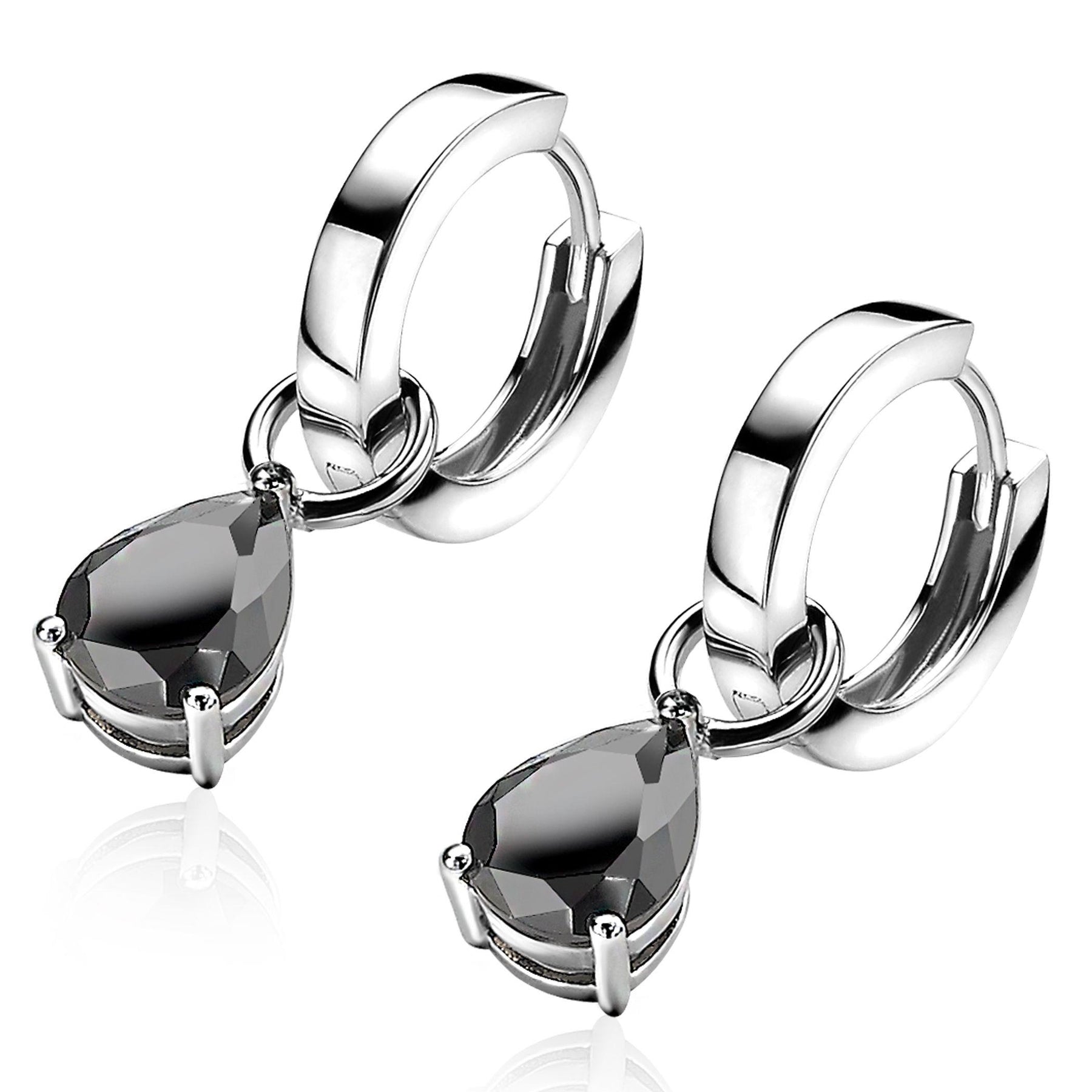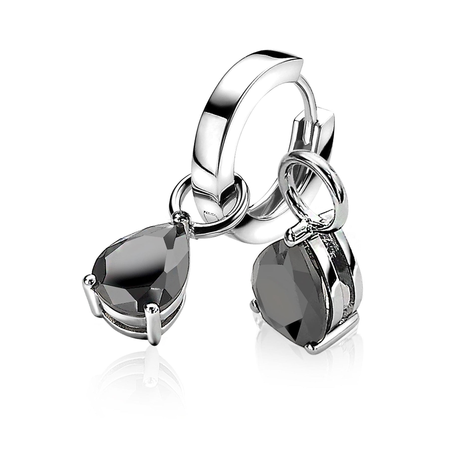 ZINZI zilveren oorbedels peervormig zwart ZICH1302Z (zonder oorringen)