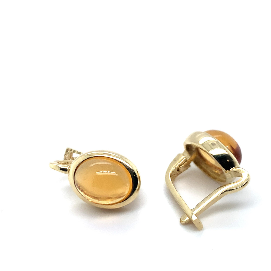 14 kt chalcedoon oorhangers met 14 kt geelgouden oorringen.