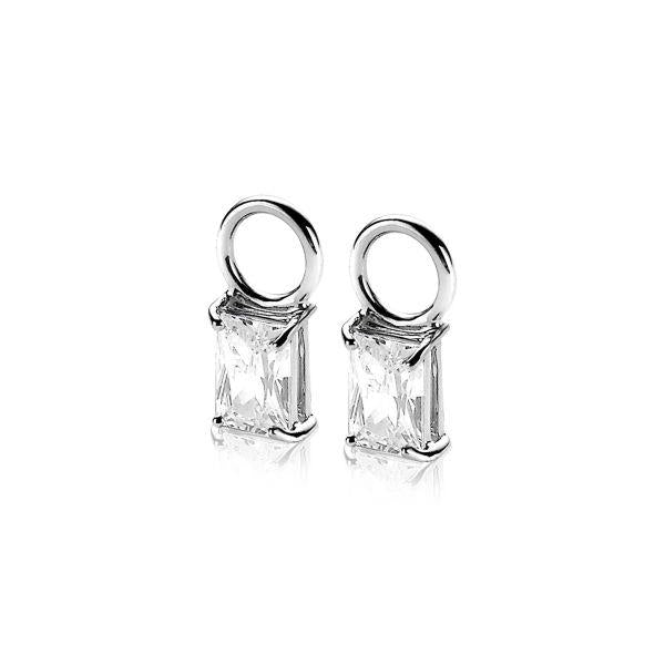 ZINZI zilveren oorbedels 12mm rechthoek wit ZICH2021 (zonder oorringen)