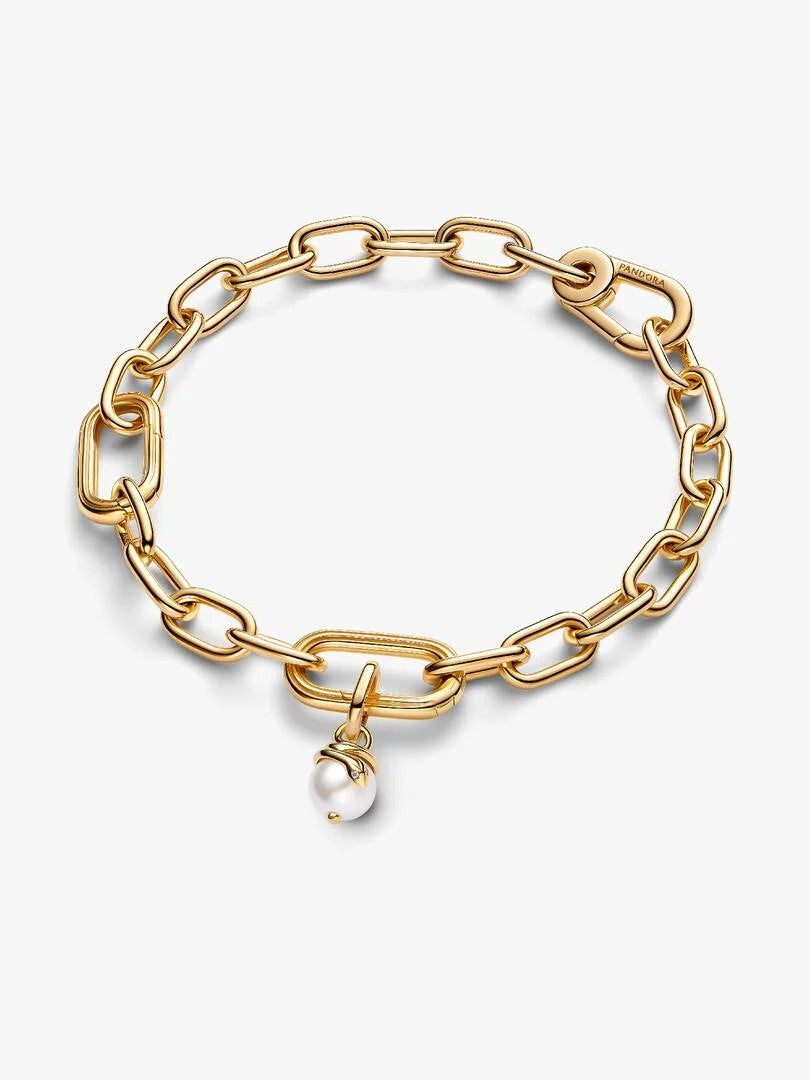 Deze verfijnde bedel is vervaardigd uit een unieke metaalmix verguld met 14-karaats goud en heeft een gedetailleerde slangenhuidtextuur. De parelmoeraccenten zorgen voor een zachte glans en geven het ontwerp een luxueuze, eigentijdse uitstraling. Dankzij het mini dangle-ontwerp beweegt de bedel subtiel mee en trekt hij op een elegante manier de aandacht.