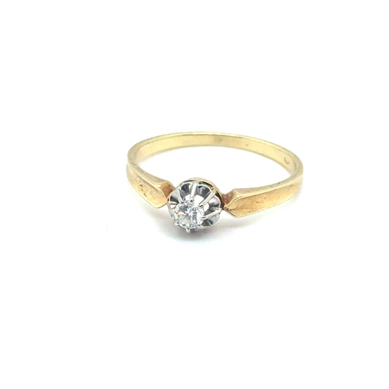 Occasion 14 Karaat Geelgouden Solitair Ring met Diamant – 0,11 ct
