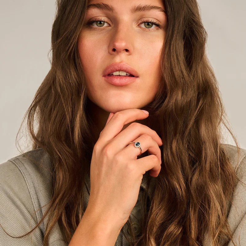 Deze ring combineert kleur, elegantie en verfijning in één ontwerp. De blauwe topaas geeft het sieraad een frisse uitstraling, terwijl de diamantjes zorgen voor een subtiele, luxe schittering. Een perfecte ring voor dagelijks dragen of als bijzonder accent bij speciale gelegenheden.
