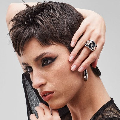 Amatum is de evolutie van een klassiek sieraad, waarbij de schakel tot het uiterste wordt doorgevoerd en opnieuw vorm krijgt in een strak, eigentijds design. De vloeiende lijnen roepen een gevoel van harmonie op, terwijl het dubbelzijdige ontwerp zorgt voor veelzijdigheid: draag de ring op twee manieren en stem hem af op jouw stijl en stemming.