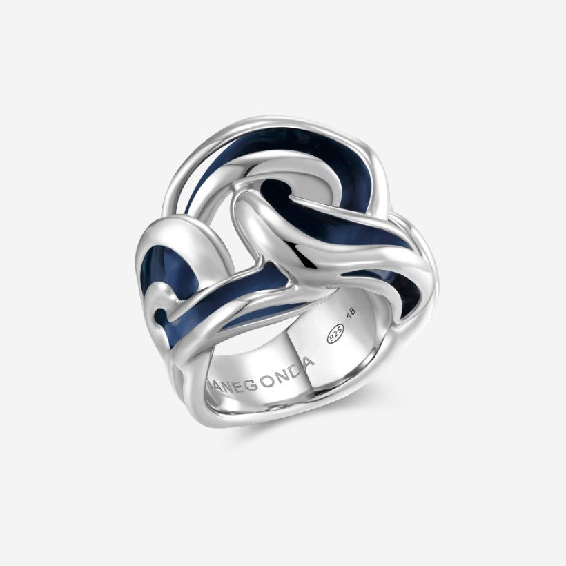 De combinatie van gepolijst zilver en kleurrijk emaille geeft de ring een moderne uitstraling en maakt hem perfect voor wie zichzelf wil uitdrukken met sieraden die meer vertellen dan alleen vorm.