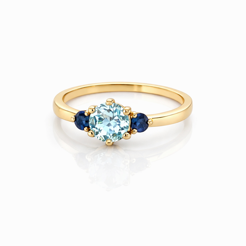 14 kt geelgouden ring saffier en blauwe topaas
