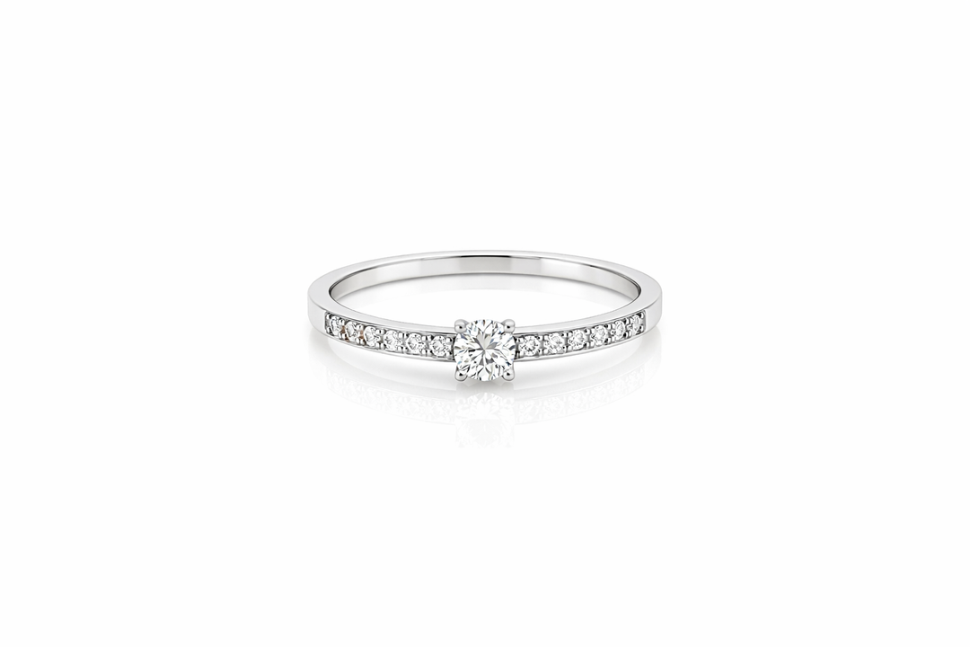 Solitair Ring met Zijstenen Klemzetting 0.16 Crt Middensteen