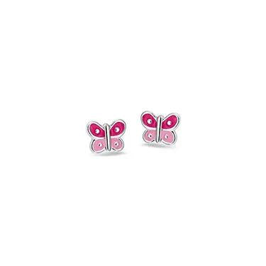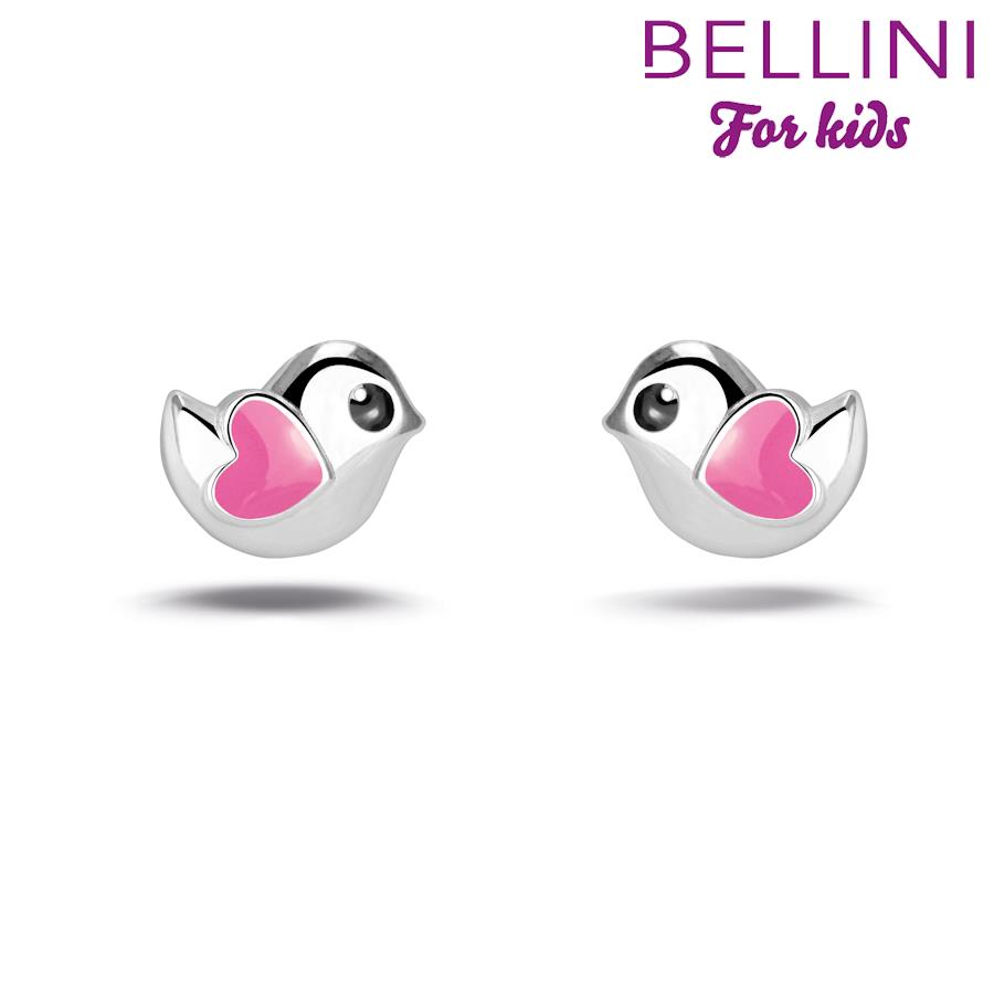 Zilveren oorknopjes konijn met roze emaille strikje 575.038
