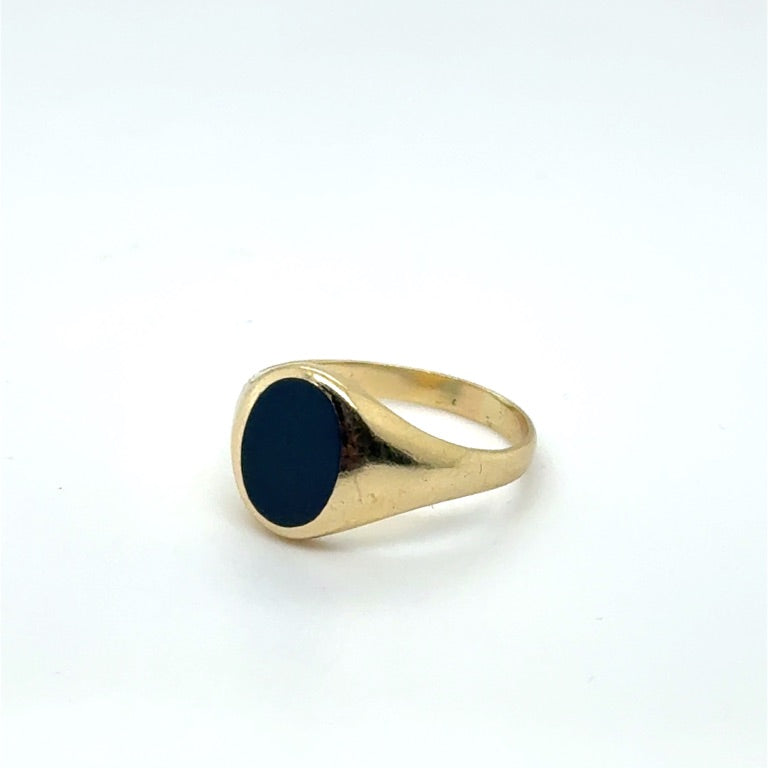 14 kt Geelgouden Zegelring met Blauwe Lagensteen – Ovaal 9 × 7 mm