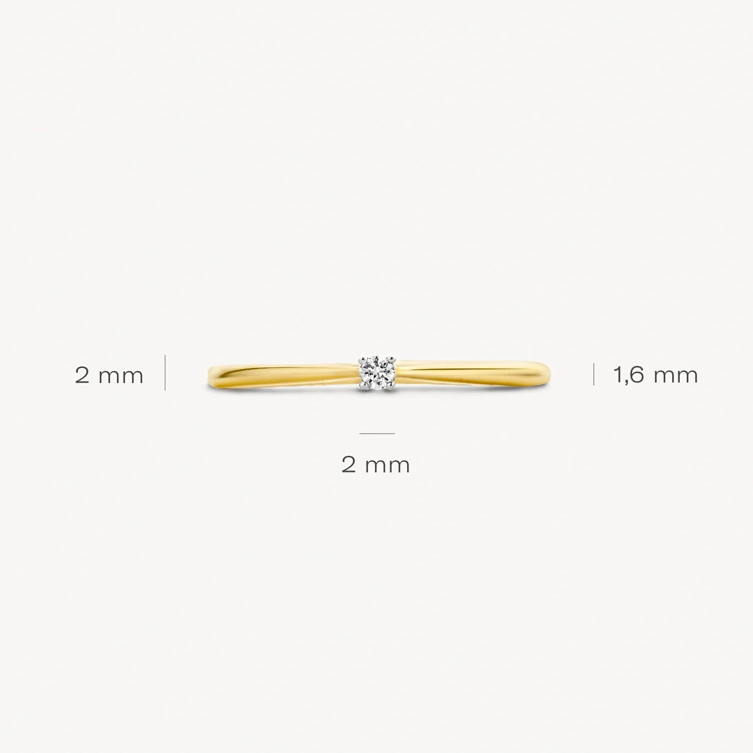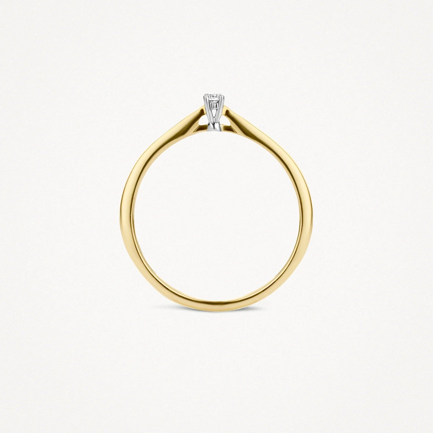 In deze tijdloze 14k geel- en witgouden ring sprankelt een briljant geslepen diamant met een karaatgewicht van 0,03 in chatonzetting. De band heeft een doorsnee van 1,6 mm. Prachtig als klassieke solitair en in combinatie met een simpel collier met diamanthanger. Type goud: 14k Geel en wit goud Type zetting: Chaton-zetting Type steen: Diamant Steen grootte: ⌀ 1.9 mm Steenkleur: Wesselton Gewicht Diamant (in ct): 0.03 Diamant kwaliteit: SI 2 Diameter: ⌀ 1.6 mm