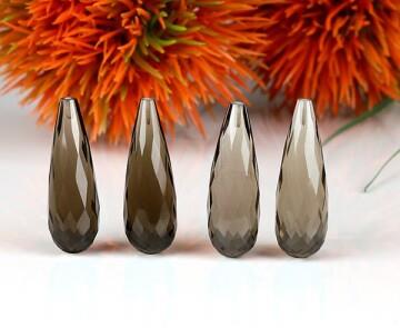 14 kt oorstekers met rookkwarst facet druppel hangers Smoky quartz 00415676 drop facetedhalf-drilled24x8 mm