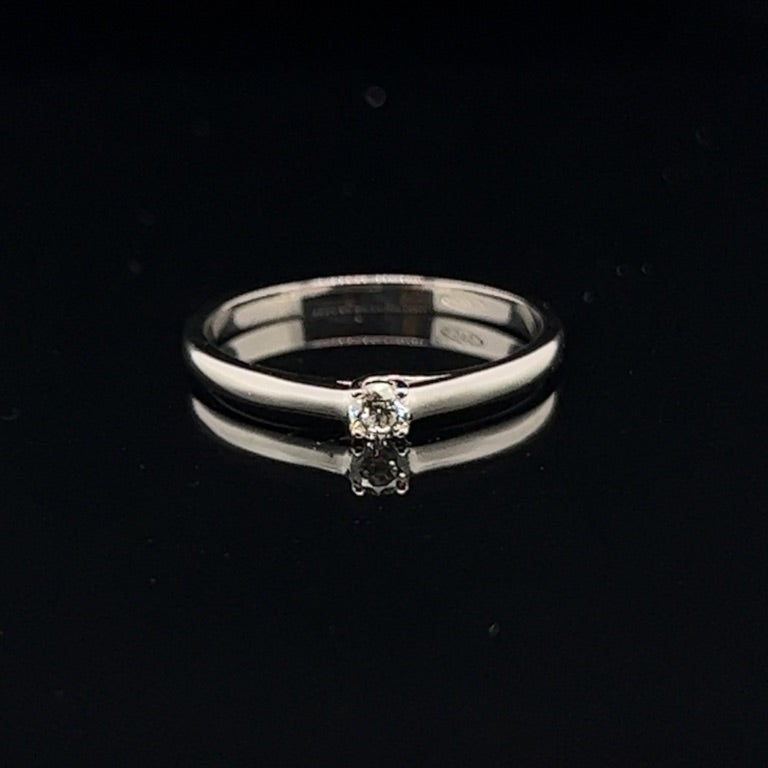 14 karaats gouden solitairring bezet met een briljant geslepen diamant. Gewicht van de ring: ca. 1,9 gram Diamant: Slijpvorm: Briljant Kleur: Wesselton Zuiverheid: SI Gewicht: 0,05 caraat