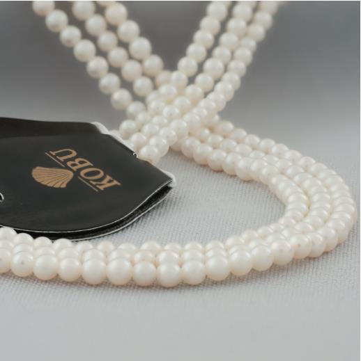Een Elegante Parelhalsketting van 42 cm met 14 kt Gouden Tussenkralen en een Prachtige Bolle 14 kt Zware Veerring