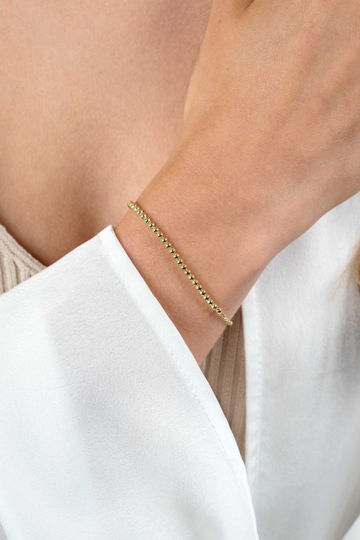 ZINZI gold plated zilveren jasseron armband met bolletjes schakels (2,5mm breed) in het midden 16-19cm ZIA2640G