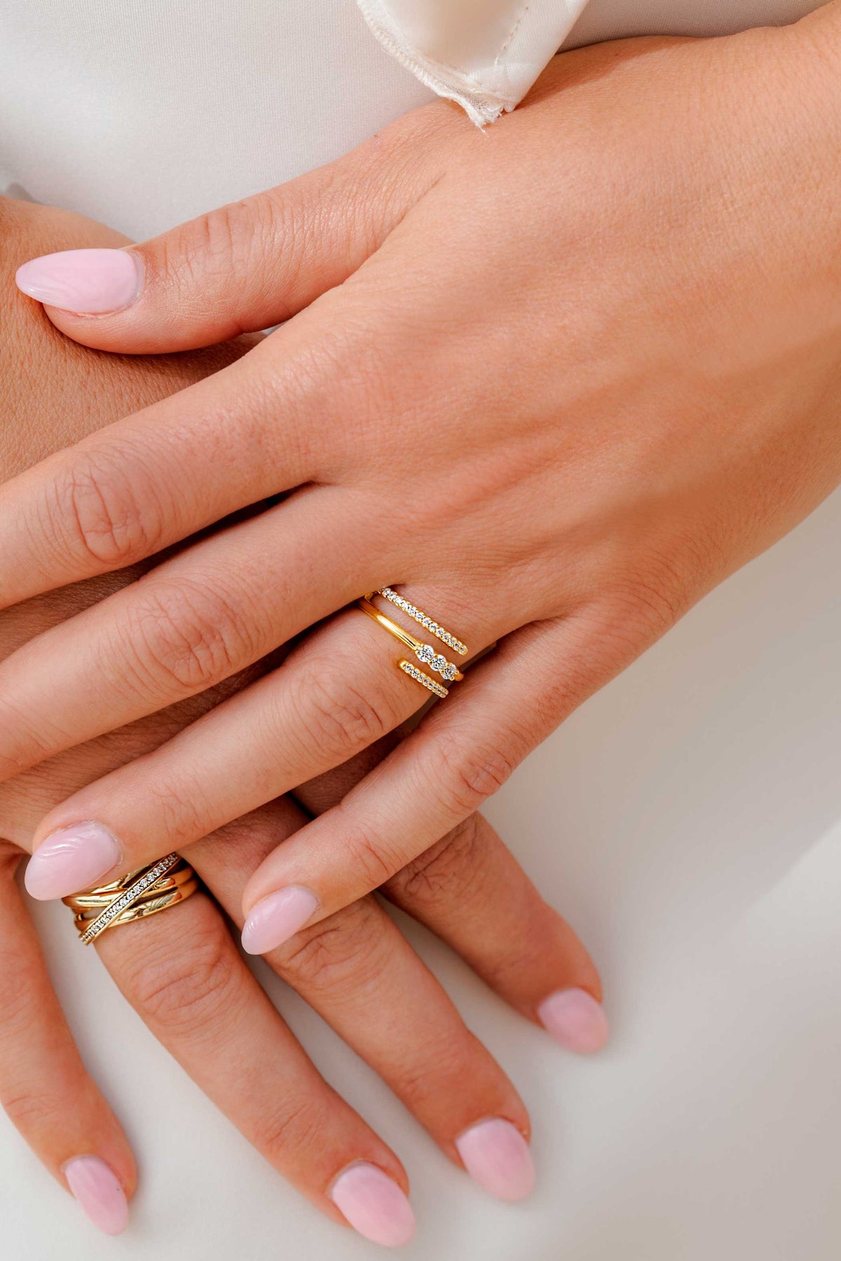 ZINZI gold plated zilveren multi-look ring (8mm breed) met 3 rijen, bezet met witte zirconia's ZIR2645Y